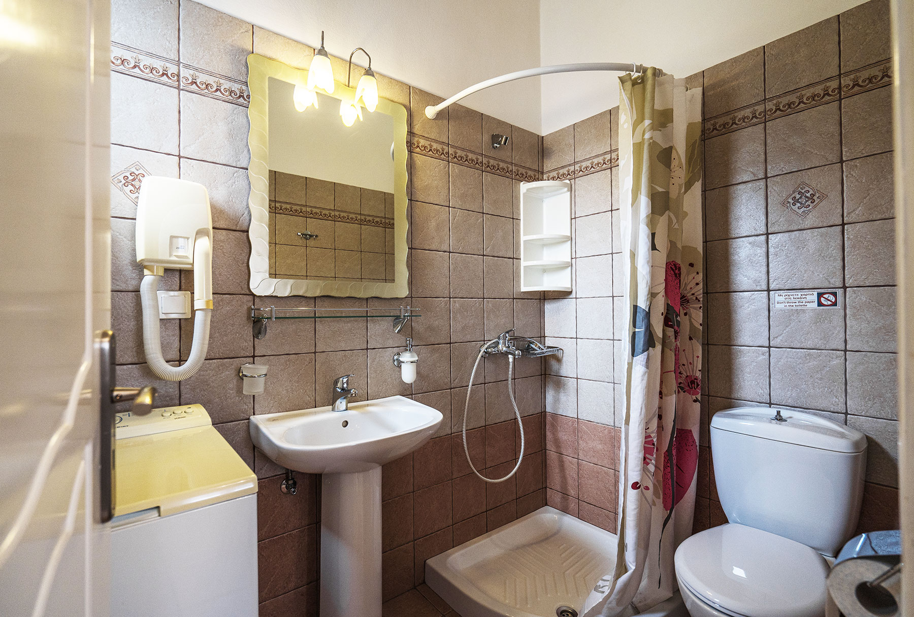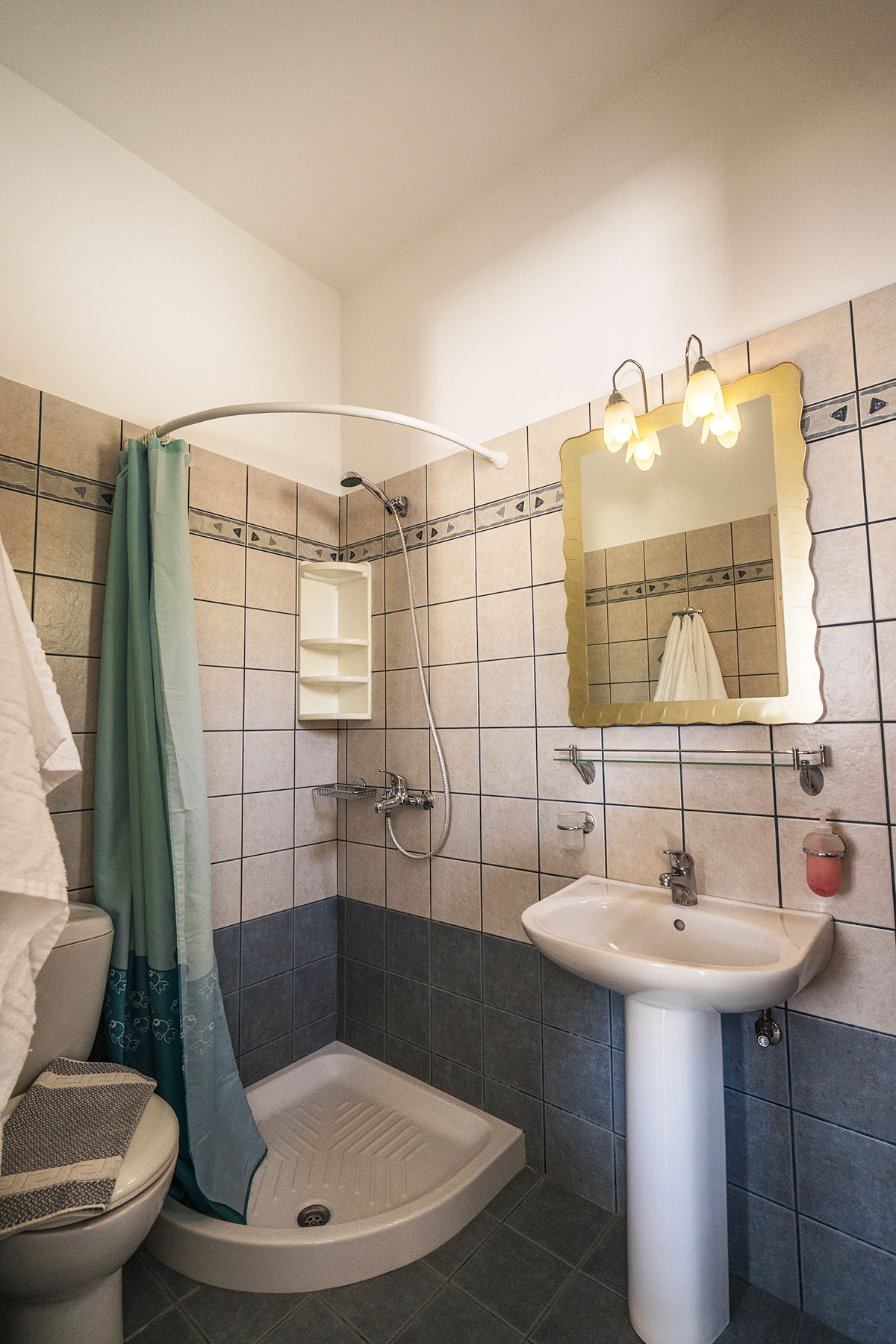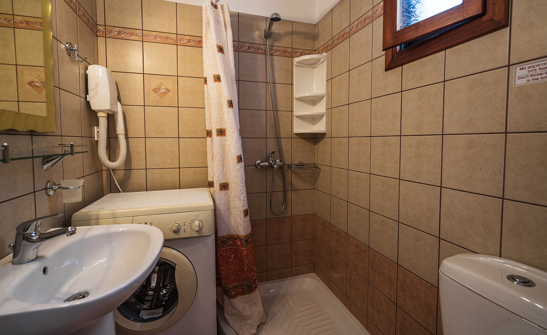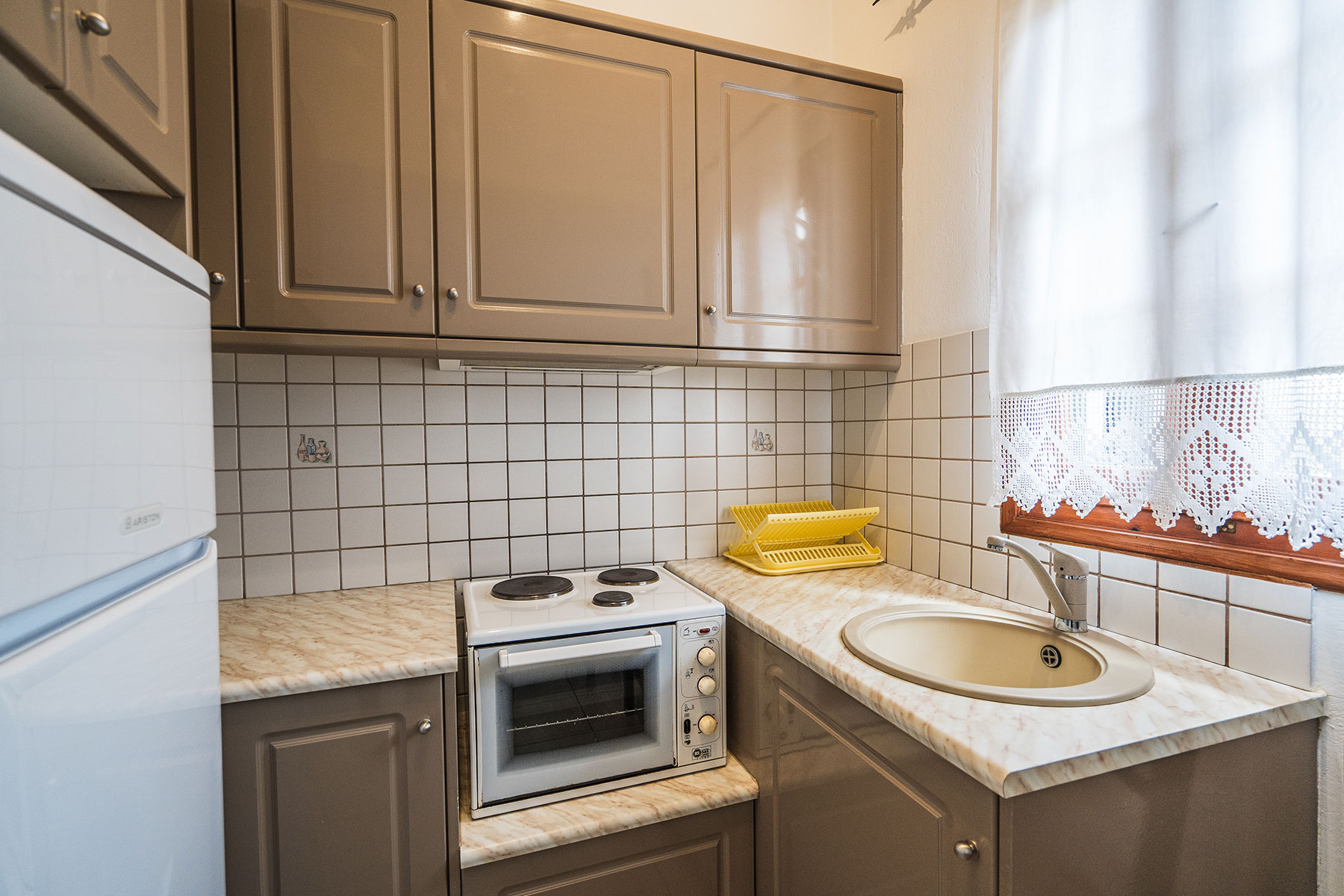 Τα μονόχωρα διαμερίσματά μας διαθέτουν κουζίνα, τραπέζι φαγητού, διπλό κρεβάτι, μπάνιο και μεγάλη πλακόστρωτη αυλή.